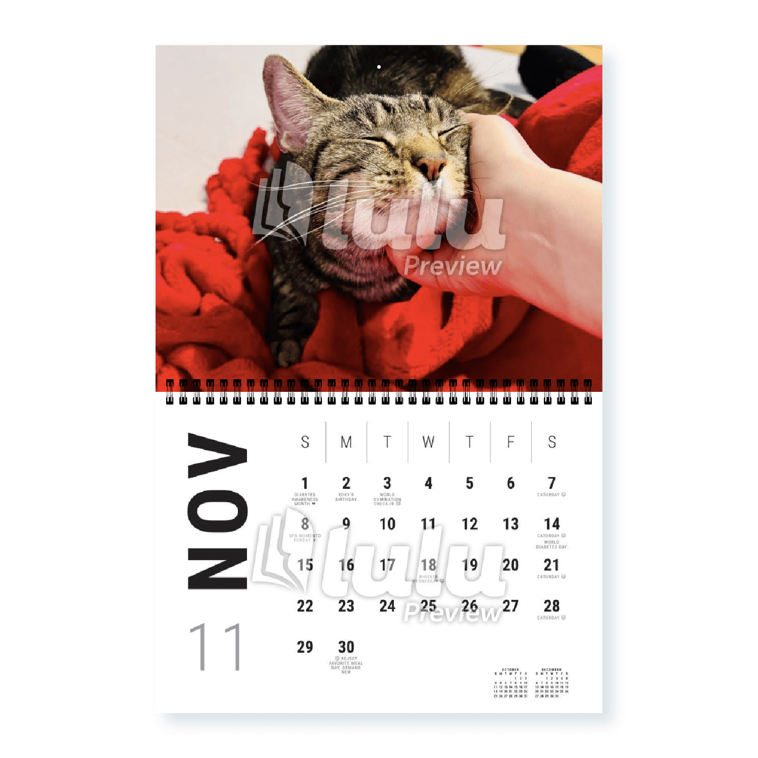 Each month is full of catitude and must-know feline dates. Some months belong entirely to Adonis, others to Anabelita. Expect holidays dreamed up by the kitties — like: